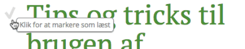 Vi ved godt at der er meget at læse og derfor kan du også markere det du har læst undervejs – ved at klikke på tjek-mærket ud for overskriften – så kan du bedre holde styr på hvad du har læst.
